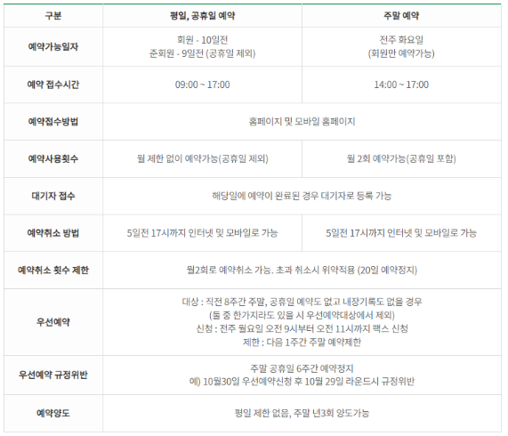 이용요금 및 예약안내