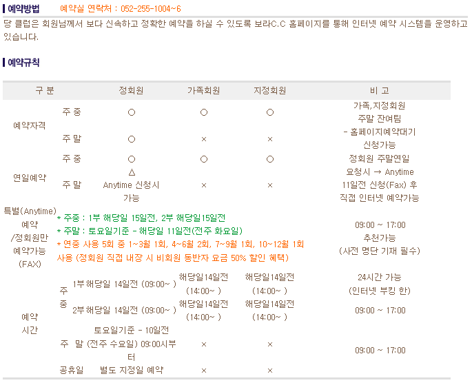 이용요금 및 예약안내