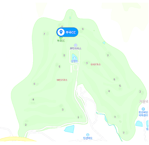 부곡cc의 코스로 동코스와 서코스가 각 9홀씩