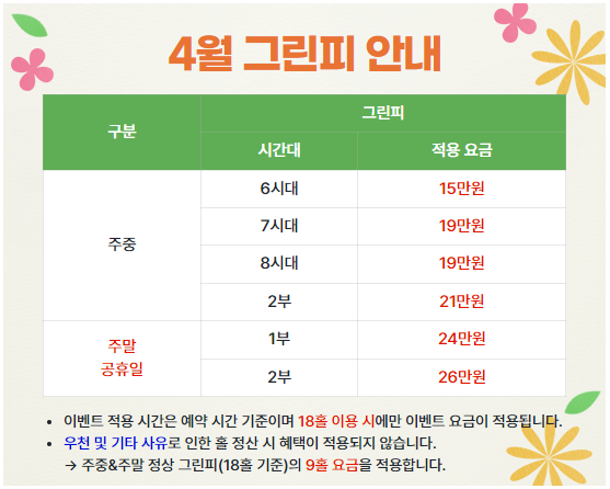 (동반인 그린피 할인은 주중2회/주말2회 제한)