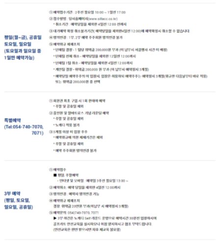 1일전 오후 5시까지 홈페이지를 통해 예약이 가능합니다.