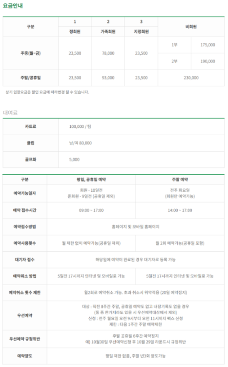 이용요금 및 예약안내