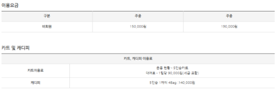 이용료와 팀당 90,000원의 카트비, 140,000원의
