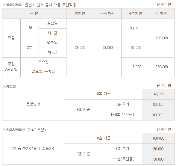 주중1부 90,000원/2부 100,000원/주말(공휴일) 115,000원