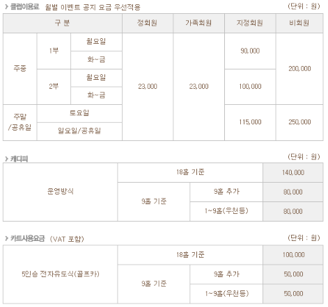 주중1부 90,000원/2부 100,000원/주말(공휴일) 115,000원