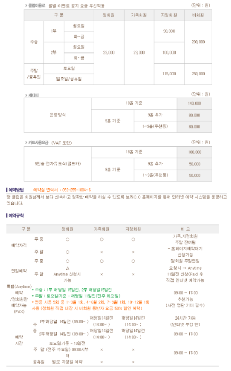 이용요금 및 예약안내