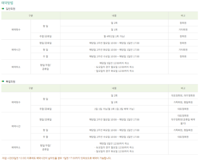 이용요금 및 예약안내