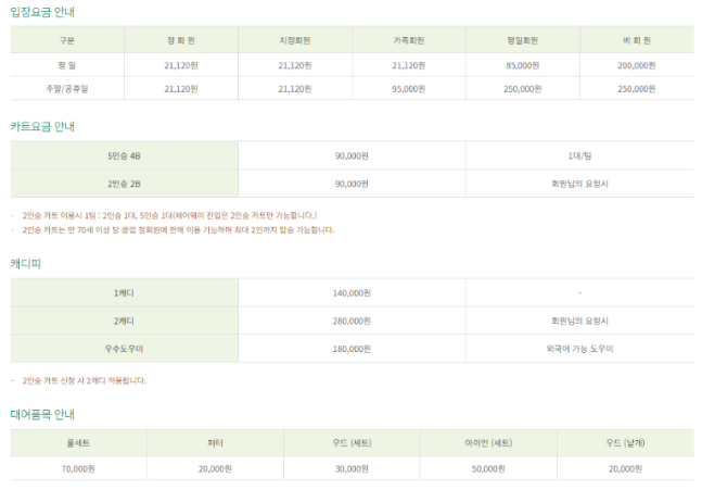 그린피 주중 12만원/주말 15만원