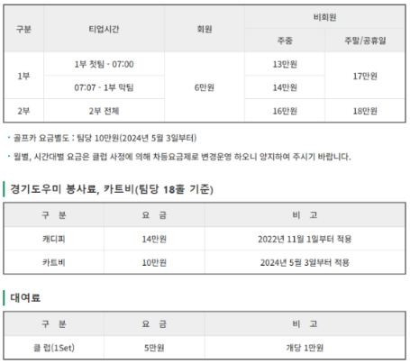 1부 주중 13만원(첫팀) 14만원(막팀)/주말 17만원
