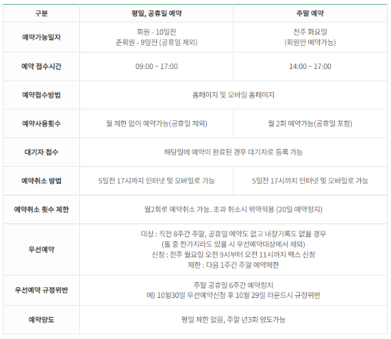 주말부킹 월 2회 가능