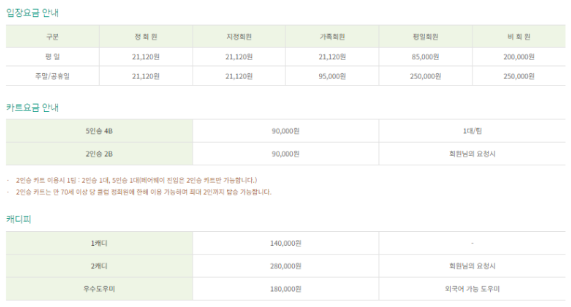카트비 팀당 90,000원/캐디피 140,000원
