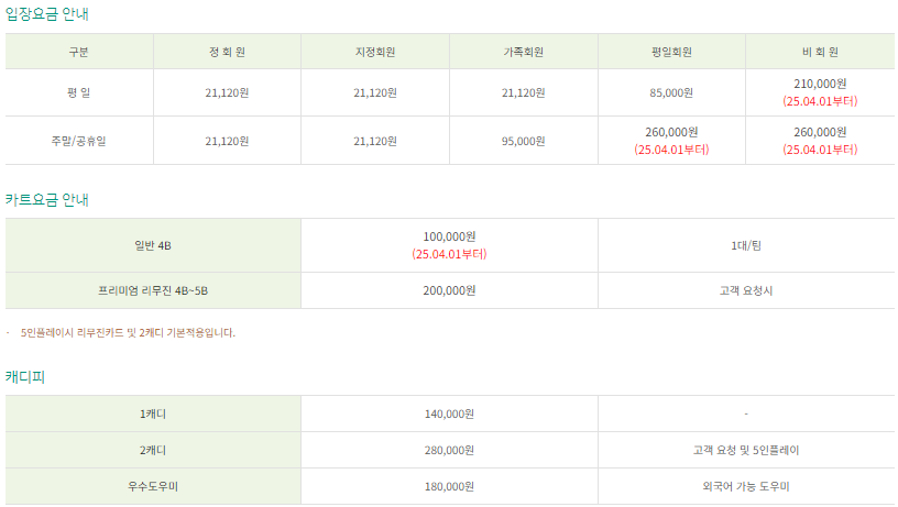 정산cc 회원권 그린피와 시세 안내드려요~!